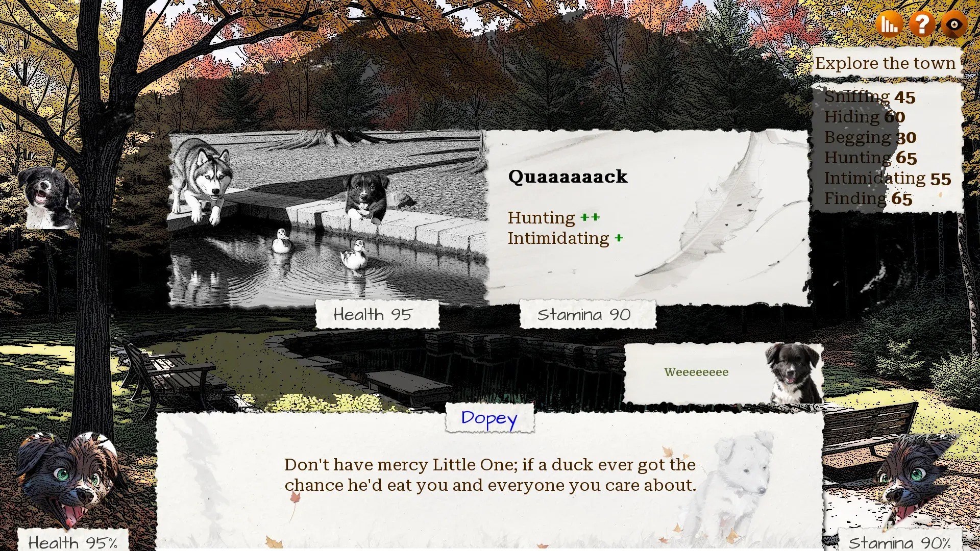 Two abandoned dogs who form an unlikely bond and set out to explore the Great North. As they travel through landscapes and face challenges along the way, Mordichator imparts his wisdom and experience to his young companion. With RPG and point-and-click elements, this beautifully illustrated visual novel offers a unique gaming experience that combines humor, heartwarming moments, and multiple endings based on your choices. Suitable for mature audiences.